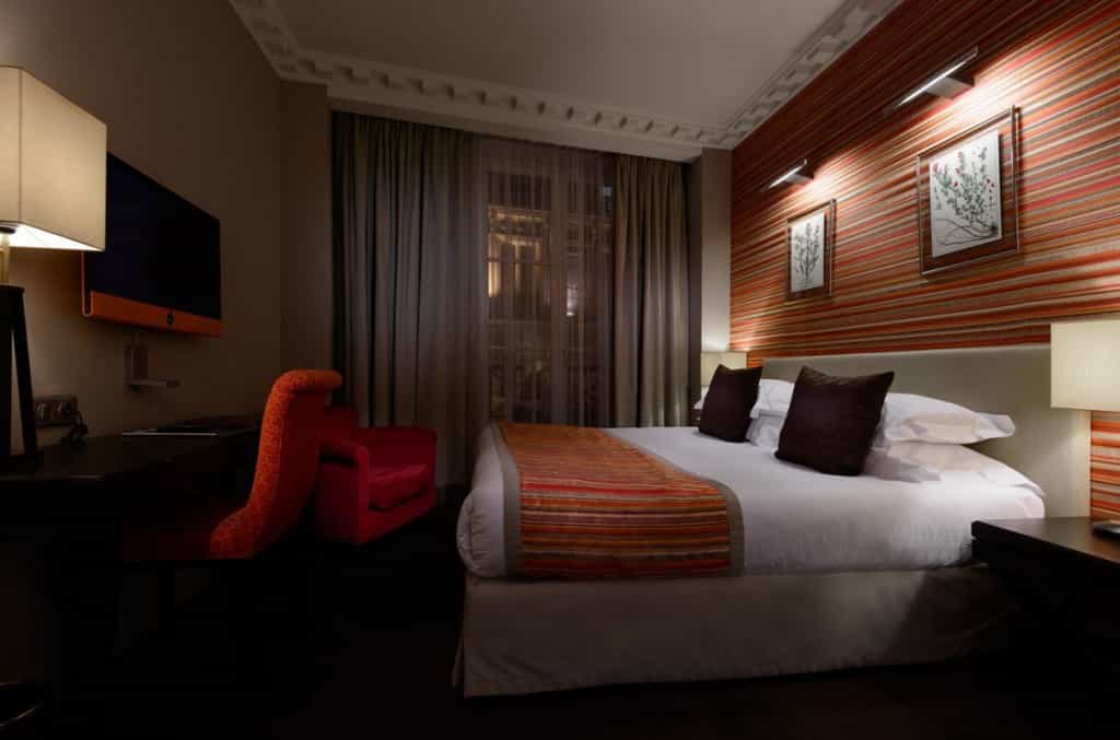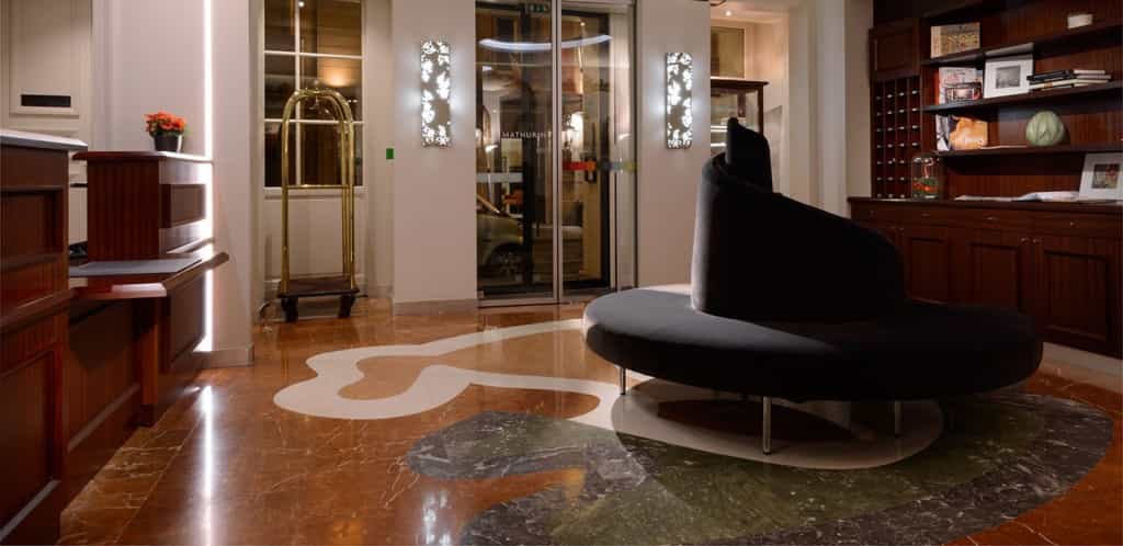 « Le luxe d’être chez soi » : c’est la promesse du Mathurin. Une promesse tenue par une ambiance classique revisitée et atmosphère chaleureuse, en plein coeur de Paris, près de la Madeleine. La toile de Jouy y côtoie le fauteuil club tandis que la lumière tamise et apaise, à peine le pas du lobby franchi.